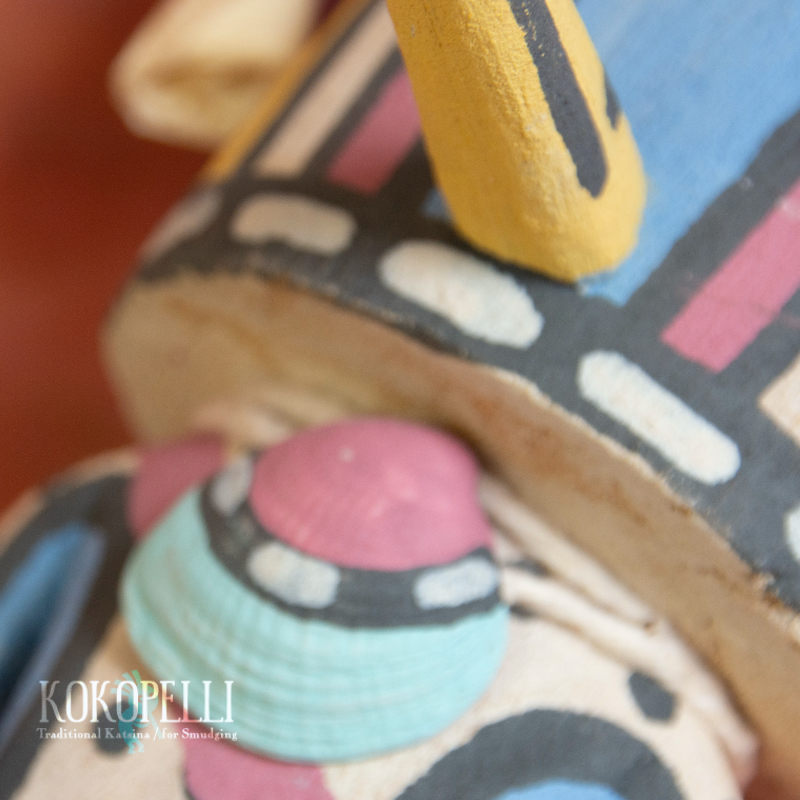 カチナドールはコトンウッドから作られており、装飾には鳥の羽や鹿革等を使用しています。 そのため湿気や極度の乾燥には弱く、紫外線にも注意が必要です。 直射日光が当たらない場所に飾ってください。 壁に掛ける場合は金具をしっかりと取り付けてください。